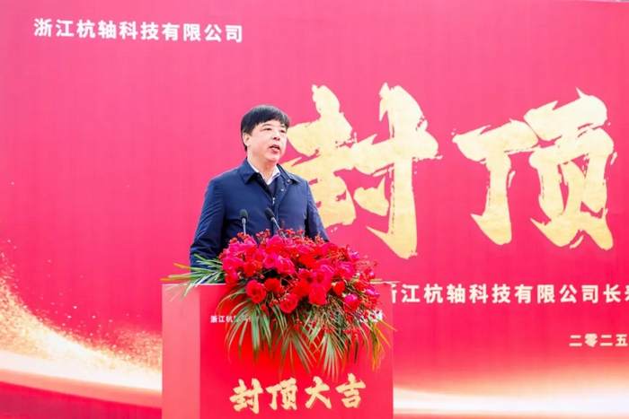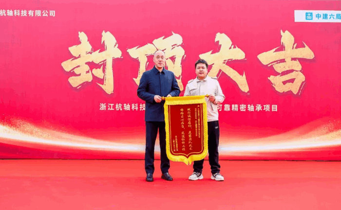 12月27日上午,浙江杭轴科技有限公司长寿命、高可靠精密轴承项目主体结构封顶仪式在浙江省湖州市举行。人本股份运营总监张向东、杭州轴承集团有限公司董事长蒋迪永、杭州人本轴承有限公司总经理李国军、中建六局土木公司副总经理耿永胜等项目建设、施工、监理等各方代表齐聚现场,共同见证这一重要的阶段性成果。