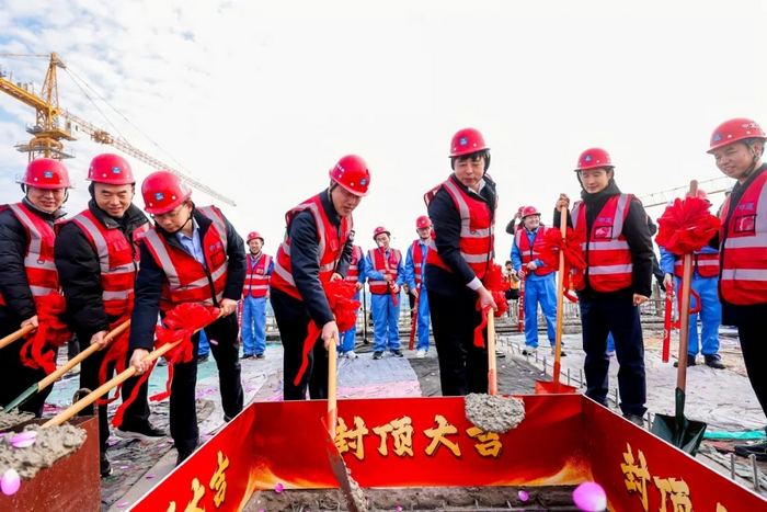 耿永胜在发言中回顾了项目建设历程。面对高精度、高洁净度的厂房建设要求,项目团队科学组织、攻坚克难,应用新技术、严控各环节,确保了工程安全、优质、高效推进。他强调,封顶既是阶段性胜利,更是新征程的起点,公司将继续坚持“客户至上 质量第一”的工作总基调,确保项目完美履约。